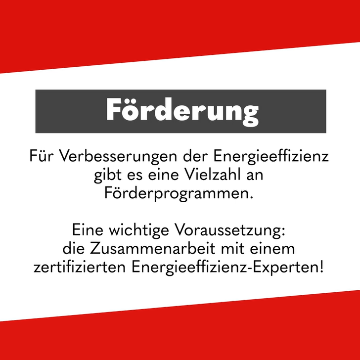 Eine wichtige Voraussetzung: Die Zusammenarbeit mit einem zertifizierten Energie-Effizienz-Experten! Dieser arbeitet gemeinsam mit euch ein sinnvolles und individuell angepasstes Gesamtkonzept aus und ist gleichzeitig Voraussetzung für die Beantragung der Fördermittel.