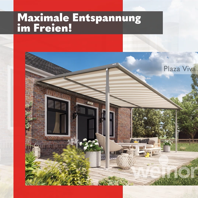 Mit einer weinor Markise könnt ihr entspannte Stunden an der frischen Luft genießen und euren Außenbereich in eine Wohlfühloase verwandeln. Setzt auf stilvollen Sonnenschutz und maximale Entspannung im Freien!