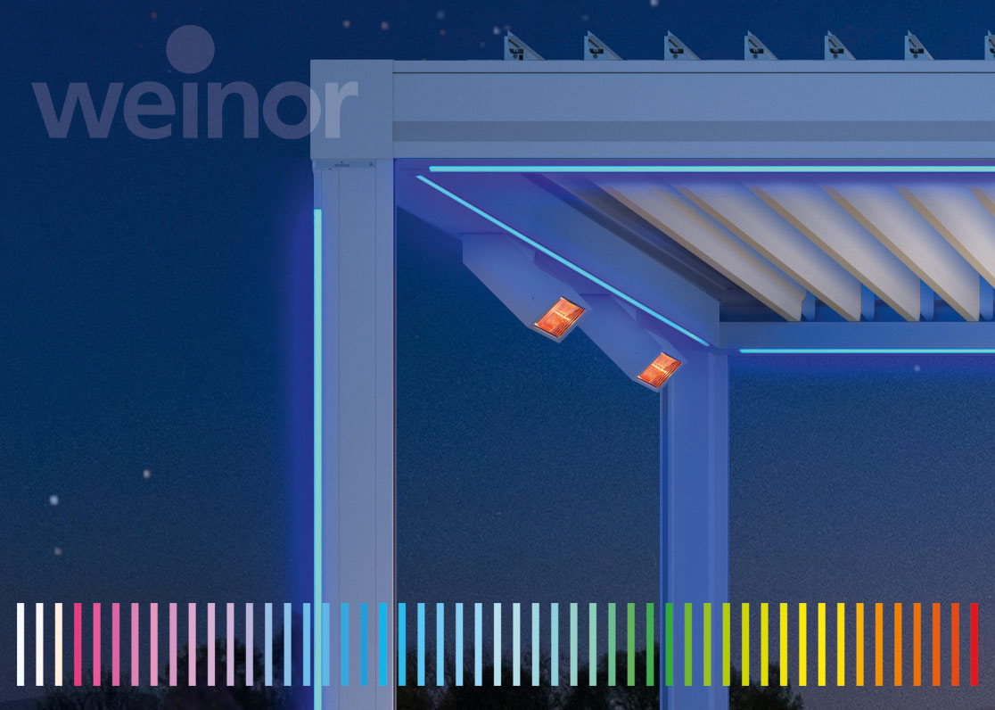 * Bitte beachten Sie: Farb-LED-Bänder, die mit weinor BiConnect gesteuert werden, dienen ausschließlich der Erzeugung von farbigem Licht.