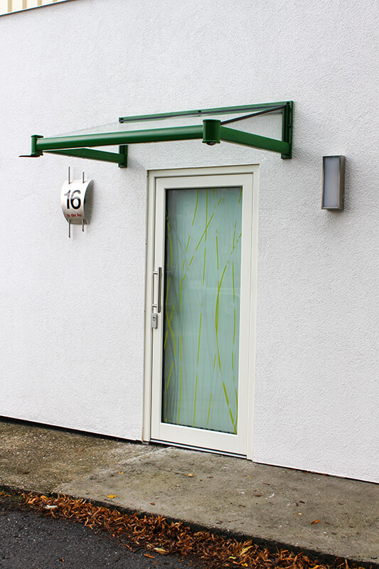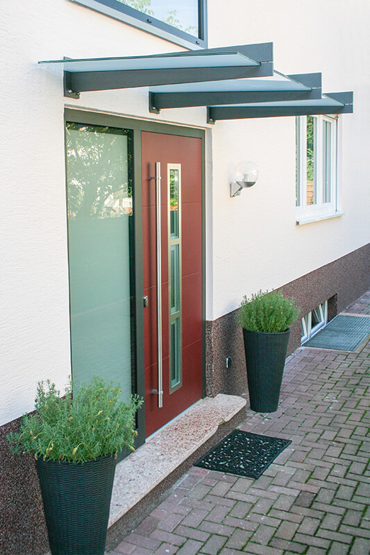 Um die Attraktivität Ihres Hauseinganges zu erhöhen, gibt es von uns Lösungen nach Maß. Die Vordach-Systeme überzeugen durch eine formschöne und unaufdringliche Architektur. Die Typenvielfalt ermöglicht die harmonische Abstimmung auf neue oder bereits bestehende Fassaden und unterstreicht den individuellen Charakter Ihres Hauses.