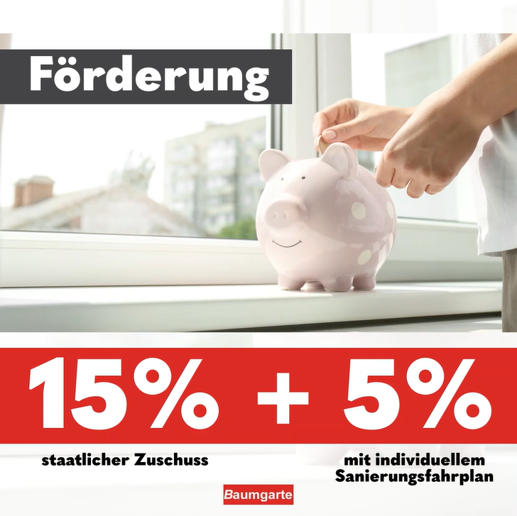 Wenn ein individueller Sanierungsfahrplan vorliegt, erhöht sich dieser Grundfördersatz um weitere 5 % und die förderfähigen Investitionskosten verdoppeln sich von 30.000 € auf 60.000 € pro Wohneinheit.