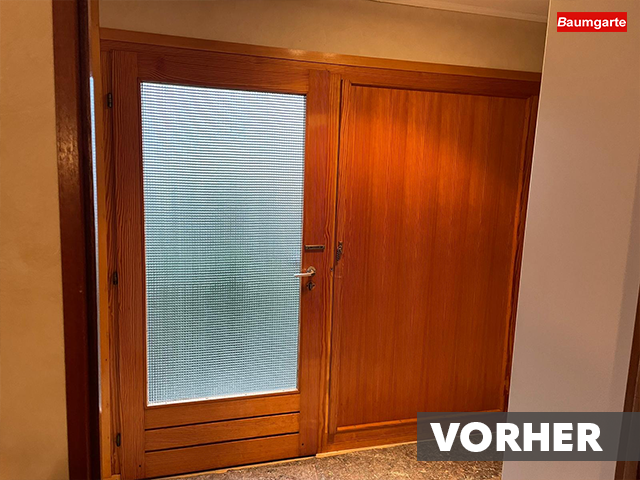 Der Ausbau der alten Holz-Haustür stellte unser Team vor eine anspruchsvolle Aufgabe, die wir jedoch mit Fingerspitzengefühl und unserer Fachkenntnis bravourös meistern konnten.