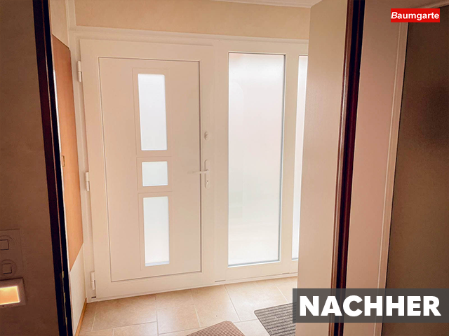 Seht euch die beeindruckende Transformation an: von einer alten Holz-Haustür zu einer stilvollen Kunststofflösung!