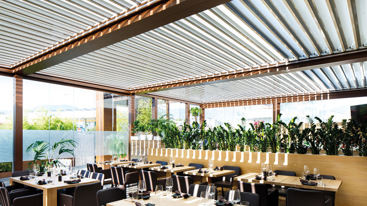 Die bioklimatischen Pergolen von Gibus stehen in ständiger leiser Zwiesprache mit der Natur, um Ihnen bei jedem Wetter eine absolut konstante Wohlfühlatmosphäre zu bieten.