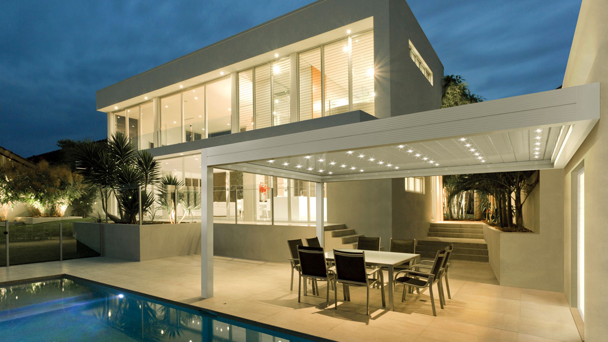 Die Standard-Ausführung unseres Lamellendachs enthält eine integrierte Beleuchtung für eine besonders angenehme Lichtstimmung am Abend, sowie eine integrierte Regenrinne. Durch die verschiedenen möglichen Formen, Größen und Variationen erhalten Sie eine größtmögliche Planungsfreiheit.