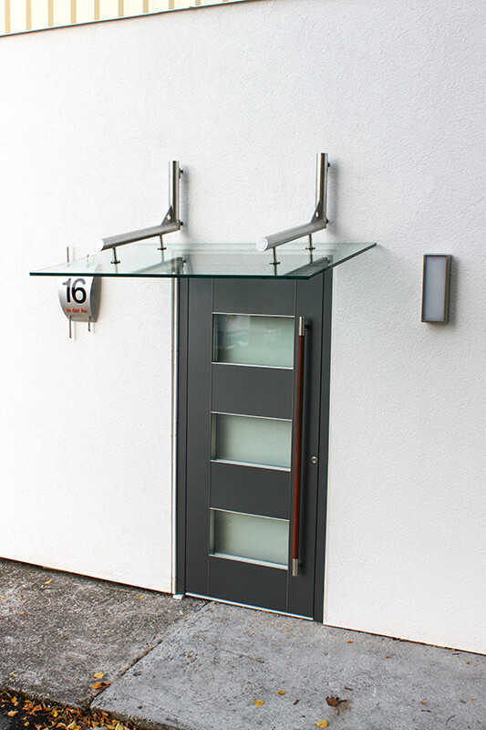 Um die Attraktivität Ihres Hauseinganges zu erhöhen, gibt es von uns Lösungen nach Maß. Die Vordach-Systeme überzeugen durch eine formschöne und unaufdringliche Architektur. Die Typenvielfalt ermöglicht die harmonische Abstimmung auf neue oder bereits bestehende Fassaden und unterstreicht den individuellen Charakter Ihres Hauses.